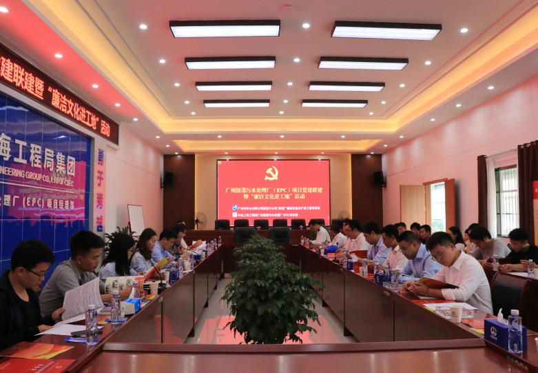 廣州瀝滘污水處理廠(EPC)項目黨支部與業主廣州市凈水公司瀝滘污水處理廠黨支部開展了黨建聯建暨“廉潔文化進工地”活動。會上,廣州瀝滘項目黨支部書記作了項目黨建、廉潔風險防控