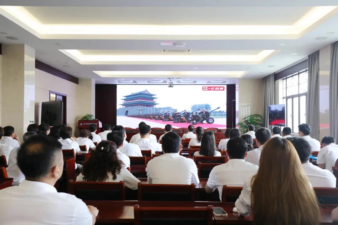 公司總部黨員干部、職工在公司總部一樓會議室滿懷激情收看慶祝大會直播,共同慶祝中國共產(chǎn)黨百年華誕。