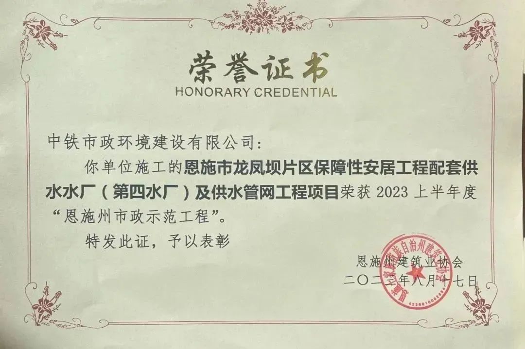 8月17日,公司承建的恩施市龍鳳壩片區保障性安居工程配套供水水廠(第四水廠)及供水管網工程項目榮獲 2023 上半年度“恩施州市政示范工程”。...
