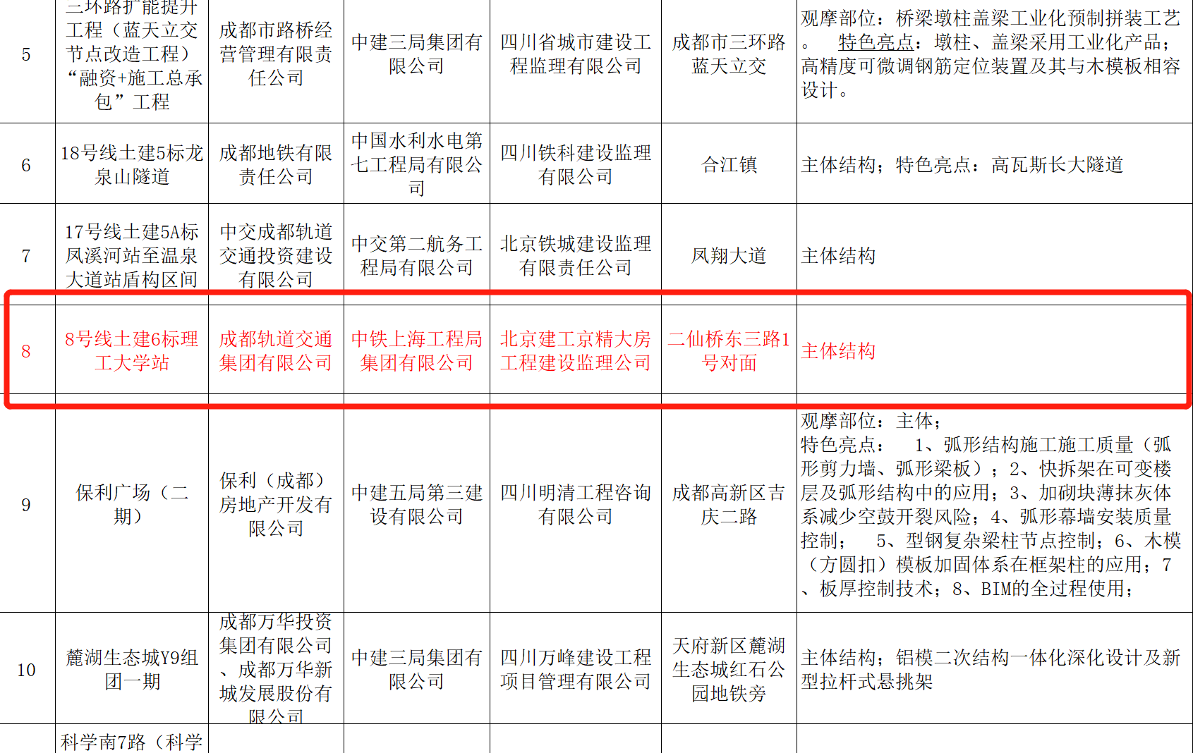 近日,由公司承建的成都軌道交通8號線一期工程6標理工大學站榮獲2019年度成都市“優質示范工程”,這是繼理工大學站榮獲成都市“安標工地”后的又一殊榮。...