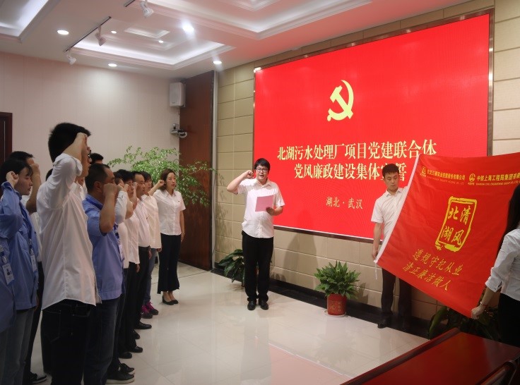 當(dāng)天下午,武漢北湖污水處理廠項目黨建聯(lián)合體舉行了“清風(fēng)北湖”黨風(fēng)廉政建設(shè)主題活動啟動儀式。首先進行廉潔從業(yè)承諾宣誓,北湖項目黨建聯(lián)合體各成員單位共20余名黨員在黨徽下共同進行了莊嚴宣誓,均表示要自覺遵守紀律法規(guī),帶頭改進工作生活作風(fēng),自覺潔身端行,絕不以權(quán)謀私。宣誓結(jié)束后,聯(lián)合體各方代表共同簽訂了工程建設(shè)廉潔共建協(xié)議書,明確了各方廉潔共建責(zé)任及在工程建設(shè)過程中應(yīng)遵守的廉潔從業(yè)要求。最后,與會領(lǐng)導(dǎo)人員分別簽訂了廉潔從業(yè)承諾書,項目黨建聯(lián)合體全體黨員集體手抄《中國共產(chǎn)黨廉潔自律準則》,進一步加強了項目黨員職工黨性紀律及廉潔自律意識。