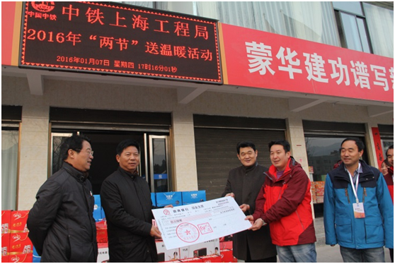 回到項目駐地,梁書記表達了集團公司黨政工團對戰斗在施工一線的干部職工和農民工的衷心感謝和祝福,隨后梁書記代表集團公司向項目送上5萬元慰問金,并把電暖器、棉被、牛奶等慰問品發到每個員工手里。梁書記表示,蒙華鐵路項目作為股份公司重點關注項目,集團公司高度重視項目各項工作的開展情況,希望全體項目管理人員能夠始終堅持高標準、嚴要求,認真部署,優質高效地完成各項計劃目標,為集團公司樹立良好品牌形象而不斷努力。