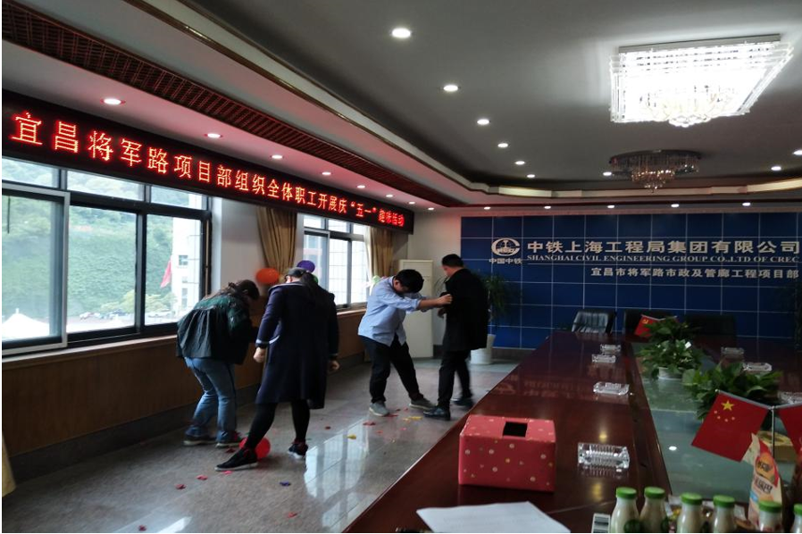 4月30日下午,宜昌市將軍路項目部組織全體職工開展了慶“五一”趣味活動,大家自告奮勇地參與到“踩氣球”和“準投球”的活動中,歡呼聲迅速將現場的氣氛推到高潮。
