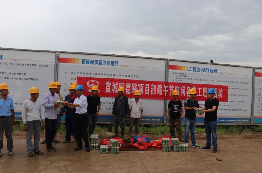 又訊,6月6日上午,宣城陽(yáng)德路項(xiàng)目部開(kāi)展“情系農(nóng)民工、端午節(jié)慰問(wèn)活動(dòng)”,項(xiàng)目部領(lǐng)導(dǎo)來(lái)到施工現(xiàn)場(chǎng)為奮戰(zhàn)在一線(xiàn)的100多名農(nóng)民工送去了粽子、豬肉、啤酒等慰問(wèn)品,送去了項(xiàng)目的溫馨祝福,讓堅(jiān)守在施工一線(xiàn)農(nóng)民工兄弟真正感受到項(xiàng)目對(duì)他們的關(guān)愛(ài)之情和濃厚的節(jié)日氣氛。(唐順林)