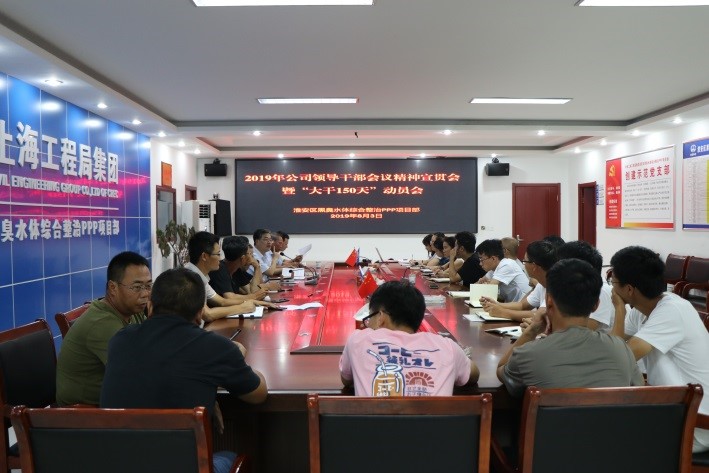 淮安區黑臭水體綜合整治PPP項目:組織項目部全體員工學習宣貫公司會議精神,要求全體員工將會議精神與實際工作相結合,認真領會、學習和貫徹。結合項目生產實際情況,項目部對后5個月重點任務及“大干150天”活動進行了全面動員。一是認清生產形勢,加強緊迫感和責任感,明確工作要求,主動作為,圍繞年底基本消除黑臭水體整治目標,加強工期、安全、質量、文明施工卡控;二是各部門各司其職,互相配合,積極主動化解外部干擾因素,爭取為施工創造有力條件;三是全員振奮精神,團結一心,擰成一股繩,攻堅克難,為實現公司年度生產營銷既定目標貢獻心力。(付文婷)