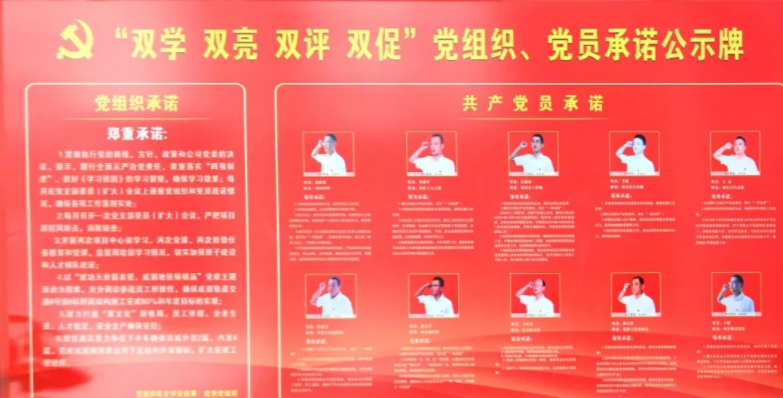 二是確?!半p亮”工作規范化、常態化。項目部嚴格按照規定每半年制定黨組織承諾、黨員承諾,定期檢查黨徽佩戴情況,桌牌擺放情況,時刻引導黨員“亮身份”,便于群眾的監督。