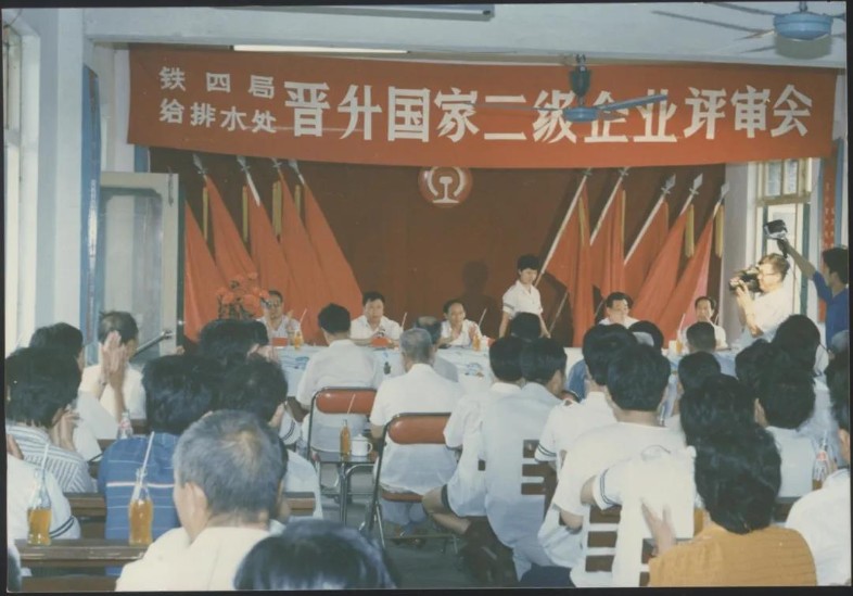 企業升級是國家“七五”期間的中心任務,圍繞著“抓管理、上等級、全面提高素質”的工作要求,全處廣泛宣傳發動。從加強基礎工作入手,成立領導小組和企管辦,圍繞安全、質量、效益等重點,廣泛開展標準化、計量、能耗、檔案、普法、全面質量管理、班組建設等專項達標升級。機關各部門、各單位對照“方針目標任務展開表(類似于現在管理矩陣、責任清單)開展資料“補強”工作。1990年,給排水工程處通過鐵道部評審組考核驗收,成為全局第一家晉升國家二級企業的單位,全處職工每人都晉升了一級標準工資,更重要的是剛剛成為獨立法人不久的給排水處整體管理理念和綜合素質有了顯著提升。處相繼榮獲全國五一勞動獎狀、全國先進施工企業等榮譽,成為名噪一時的鐵四局“四小龍”之一,無論是企業管理、經濟效益還是員工風貌,都成為全局標桿。