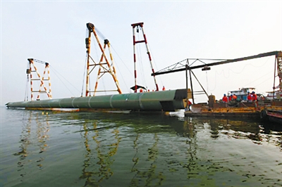 7月27日,徐州駱馬湖水源地第三標段施工現場,中鐵上海局市政公司員工冒著酷暑在湖中心吊裝最后一節內徑2.6米、長80.4米、壁厚28毫米的原水取水管道。大口徑長距離鋼管引水管線最后一節的就位,標志著徐州駱馬湖水源地原水管全線貫通。 該工程將有效提升徐州市城市供水能力,改善百萬市民的用水需求和質量,同時對推進特大型區域性中心城市戰略發展意義重大。