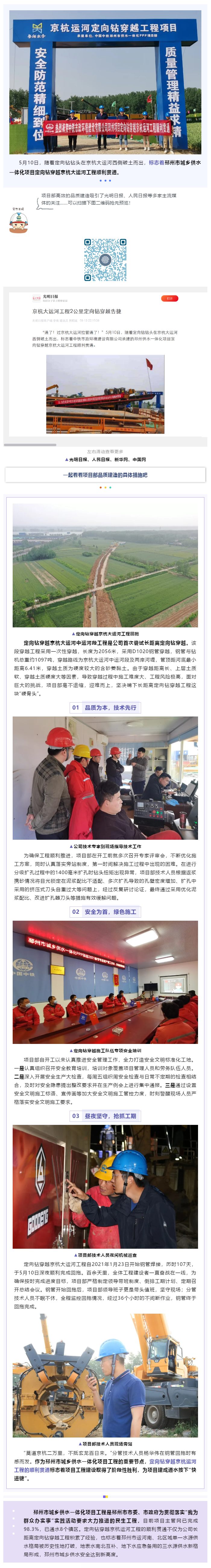 邳州項目定向鉆穿越京杭大運河工程順利貫通